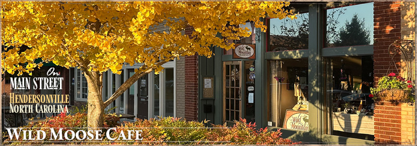 Welcome to A Wild Moose Café. We are located within, and part of, Wild Mountain Trading Co which is in the small, Blue Ridge Mountain town of Hendersonville, NC. We are in the beautiful Historic District across the street from the Historic Courthouse.